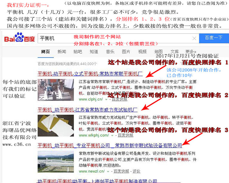 平衡機(jī) : 2018-05-23上線 2018-06-08排名第5頁(yè) 2018-07-01排名第30名 2018-08-15排名第11名 2018-08-26排名第7名 (注:平衡機(jī)一臺(tái)需要幾萬(wàn)到10多萬(wàn)元, 是難排名的關(guān)鍵詞,百度重點(diǎn)關(guān)照,因百度推廣的話,大概要60元一點(diǎn)擊)